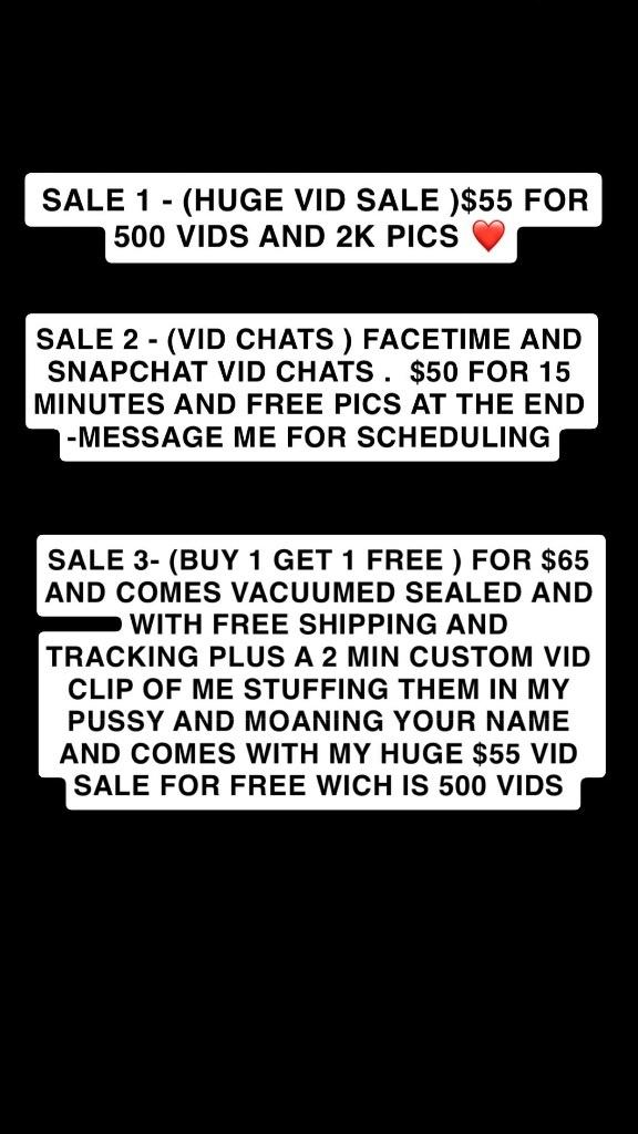 NO CALLS - ONLY TEXT ME WITH WHICH SALE YOU WANT - IF YOU DONT I WILL JUST ASSUME YOU ARE EITHER FAKE OR A SCAMMER SALE 1 - (HUGE VID SALE )$55 FOR 500 VIDS AND 2K PICS SALE 2 - (VID CHATS ) FACETIME AND SNAPCHAT VID CHATS . $50 FOR 15 MINUTES AND FREE PICS AT THE END -MESSAGE ME FOR SCHEDULING SALE 3- (BUY 1 GET 1 FREE ) FOR $65 AND COMES VACUUMED SEALED AND WITH FREE SHIPPING AND TRACKING PLUS A 2 MIN CUSTOM VID CLIP OF ME STUFFING THEM IN MY PUSSY AND MOANING YOUR NAME AND COMES WITH MY HUGE $55 VID SALE FOR FREE WICH IS 500 VIDS AND 2K PICS PAYMENTS : CASHAPP - APPLE PAY - DEBIT AND CREDIT ALL VIA MY SQUARE MERCHANT LINK SAMPLES - VERIFICATION SAMPLES AND REVIEWS DOWN BELOW IN THE PICS - DONT ASK FOR MORE PLEASE A am meeting Men only |